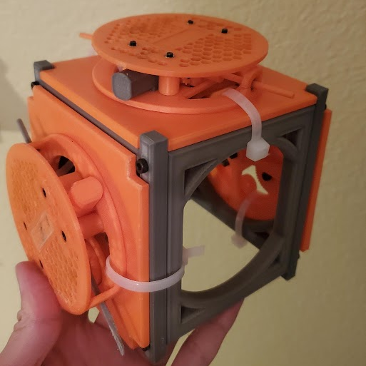Cut to May, I had made 3 working concepts, complete with motor stand-ins and a protective cover (added visual flair of holes as a real-world design would be closed and sealed from radiation and space debris impact.