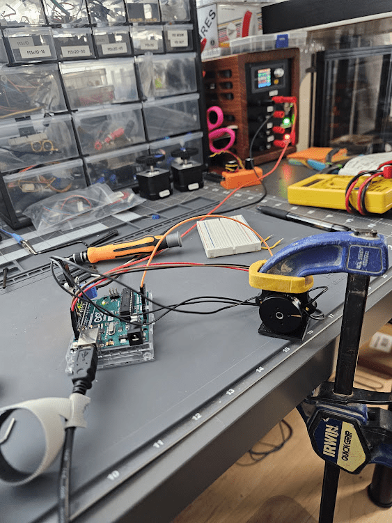 I wired everything up and fired up a quick test that gave a control signal for the motor to follow, a simple square wave. There, I could mess with the PID gain values until it matched the desired behavior I wanted, recalling things I learned in controls such as overshooting and settling time.