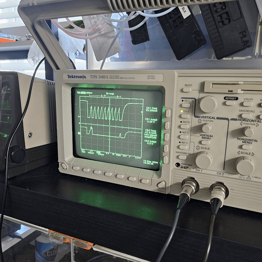 I snagged a Tektronix TDS340A oscilloscope for 100$, a damn good steal. I didn’t have a power supply to test at the market so I blindly trusted the seller when he said it was in full working order. He even threw in a pair of probes for free, how nice!