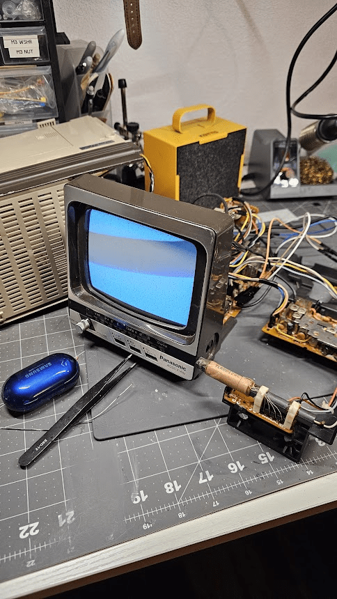 The TV by the way, was a Panasonic 1985 TRG 511T B&W radio TV.