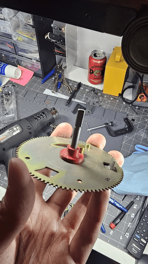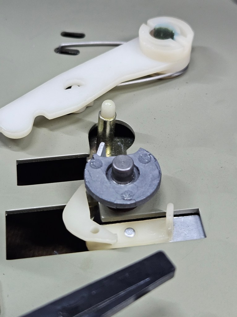 When I touched the driving gear for the automatic return feature, you can see it’s actually tilting a lot. When it’s all straightened up, it engages the center spindle and performs the return feature as expected.