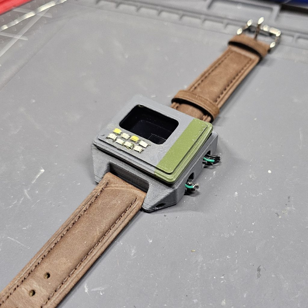 I printed a case with as minimal space for internals as possible to prevent a giant potato being strapped to my wrist. My printer is not as accurate as a resin printer so small details like cutouts for LEDs were added manually with a modelmaker’s chisel.